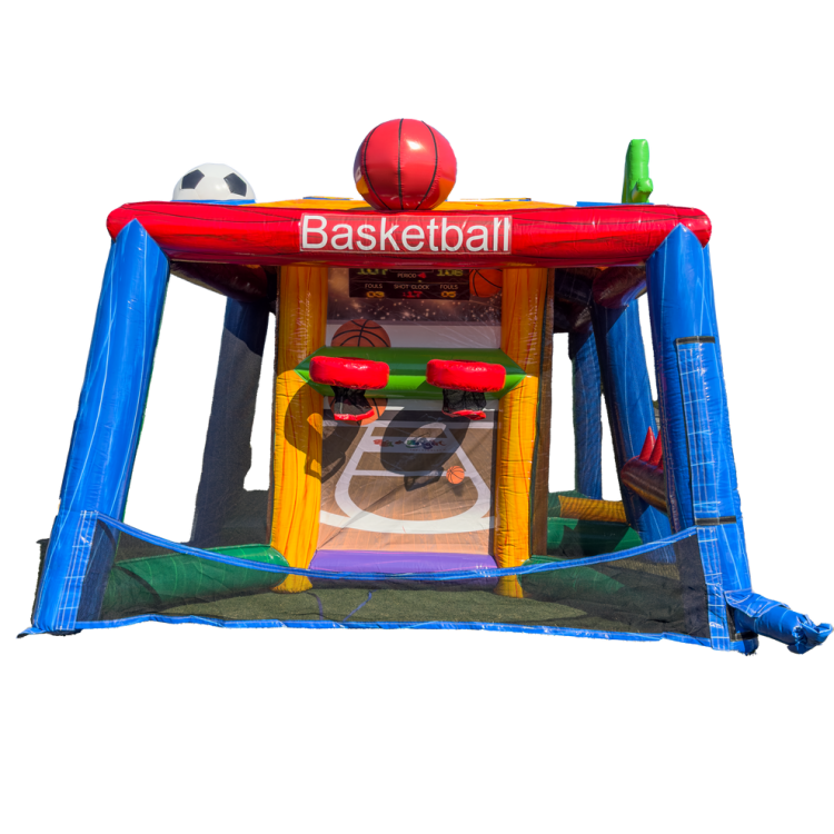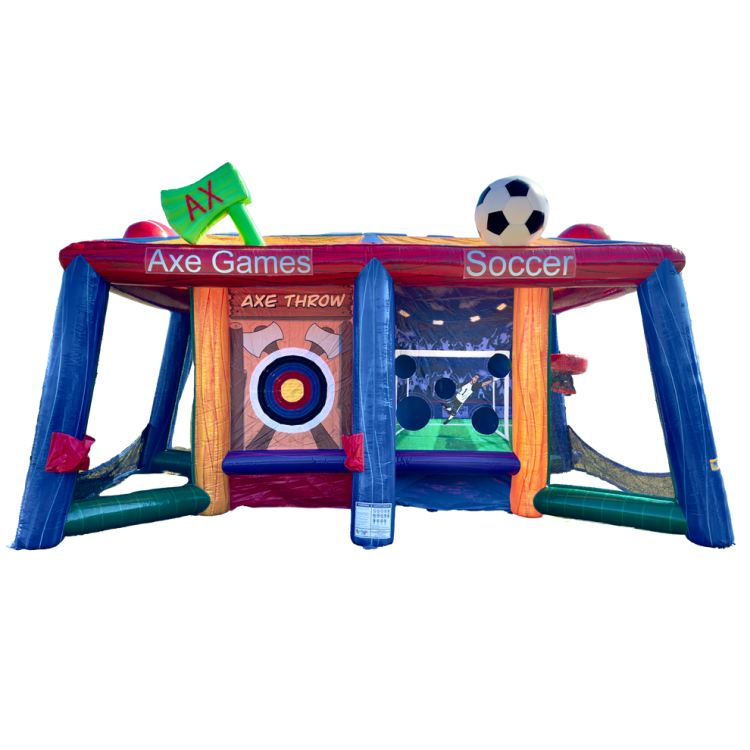 Bring the arena to your event with this all-in-one inflatable challenge zone! Perfect for birthday parties, school carnivals, church festivals or company picnics — the Fieldhouse 6 delivers six exciting games inside one spectacular setup: Archery, Baseball, Football, Axe-Throwing, Soccer, and Basketball.