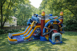 • 👧👦 OCCUPANCY: A maximum of 5-6 kids of equal size at one time for bounce houses, and 1 person at a time for slides is what most inflatable manufacturers recommend.